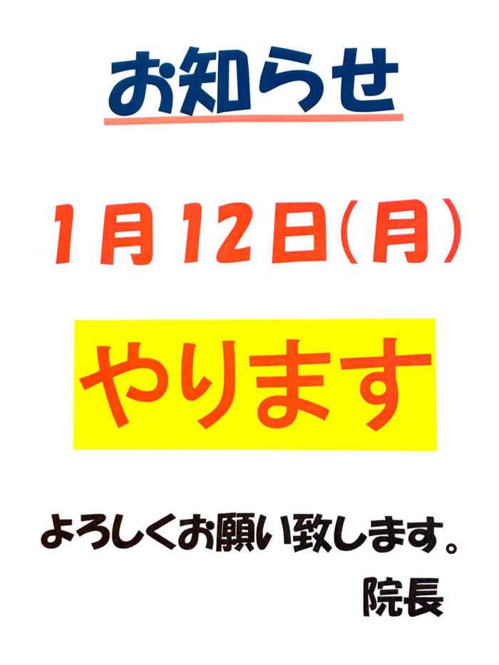 2026年1月12(月)は祝日ですが、通常通り診療いたします。