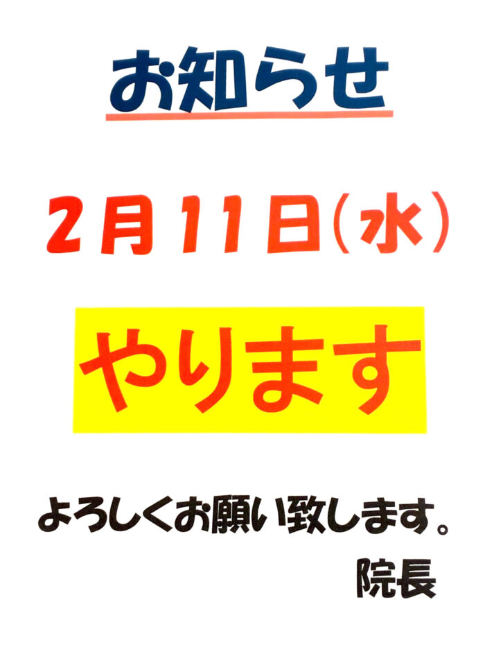 2026年2月の診療スケジュール 2026年2月11(水)は祝日ですが、通常通り診療いたします。 祝日でないとなかなか来院できないという皆様も、どうぞお気軽にご相談ください。 ++++++++++++++++ ■大友はり柔道接骨院 〒577-0832 大阪府東大阪市長瀬町3-8 23棟1F JR おおさか東線 長瀬駅より徒歩1分 (デイリーヤマザキ向かい) 2026年02月09日 |当院からのお知らせ